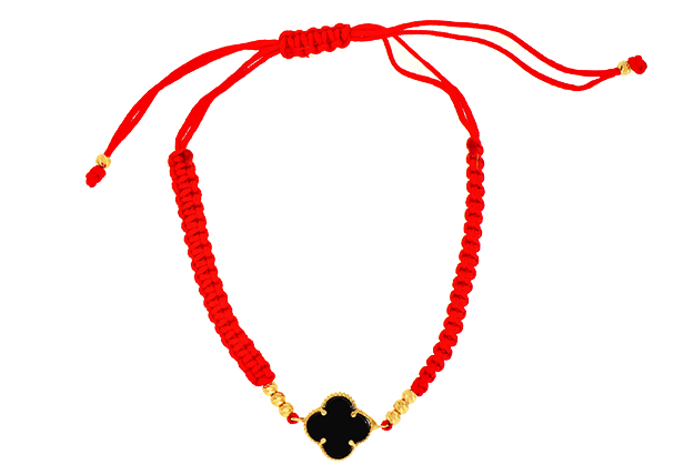 Úvod » Náramky » Detské zlaté náramky » Červený šnúrkový náramok so štvorlístkom